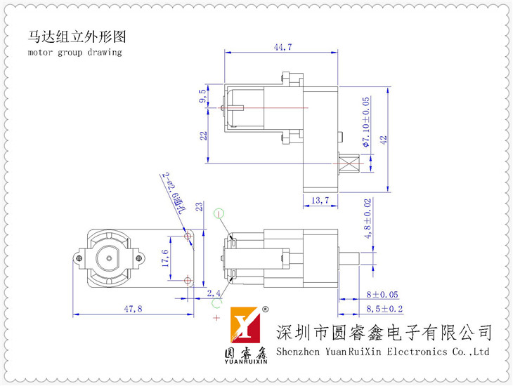 深圳市圓睿鑫電子有限公司自2008年創(chuàng)立以來,經(jīng)過誠信耕耘,公司逐步發(fā)展壯大,在為期兩年的時(shí)間內(nèi),已通過ISO9001:2000國際質(zhì)量體系認(rèn)證;目前公司現(xiàn)有廠房占地面積2500多平方米,員工180多名,專業(yè)技術(shù)工程師8名,擁有國際國內(nèi)最先進(jìn)的生產(chǎn)加工設(shè)備和檢測(cè)設(shè)備,年產(chǎn)各類型電機(jī)超過1500萬臺(tái)。